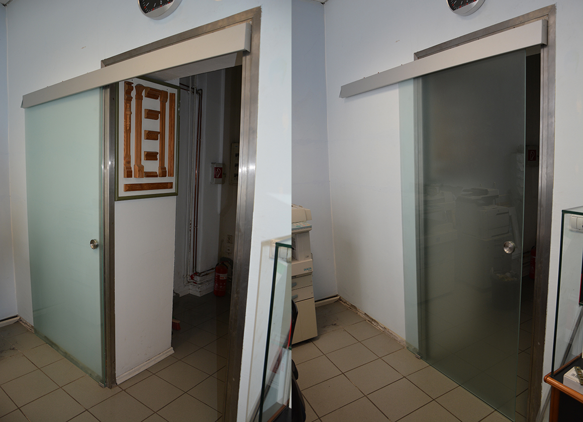 Raumtrennung aus Sicherheitsglas und Sichtschutz
