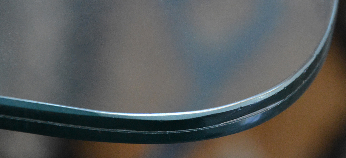 Glasarbeiten: polierte Kante einer VSG Scheibe